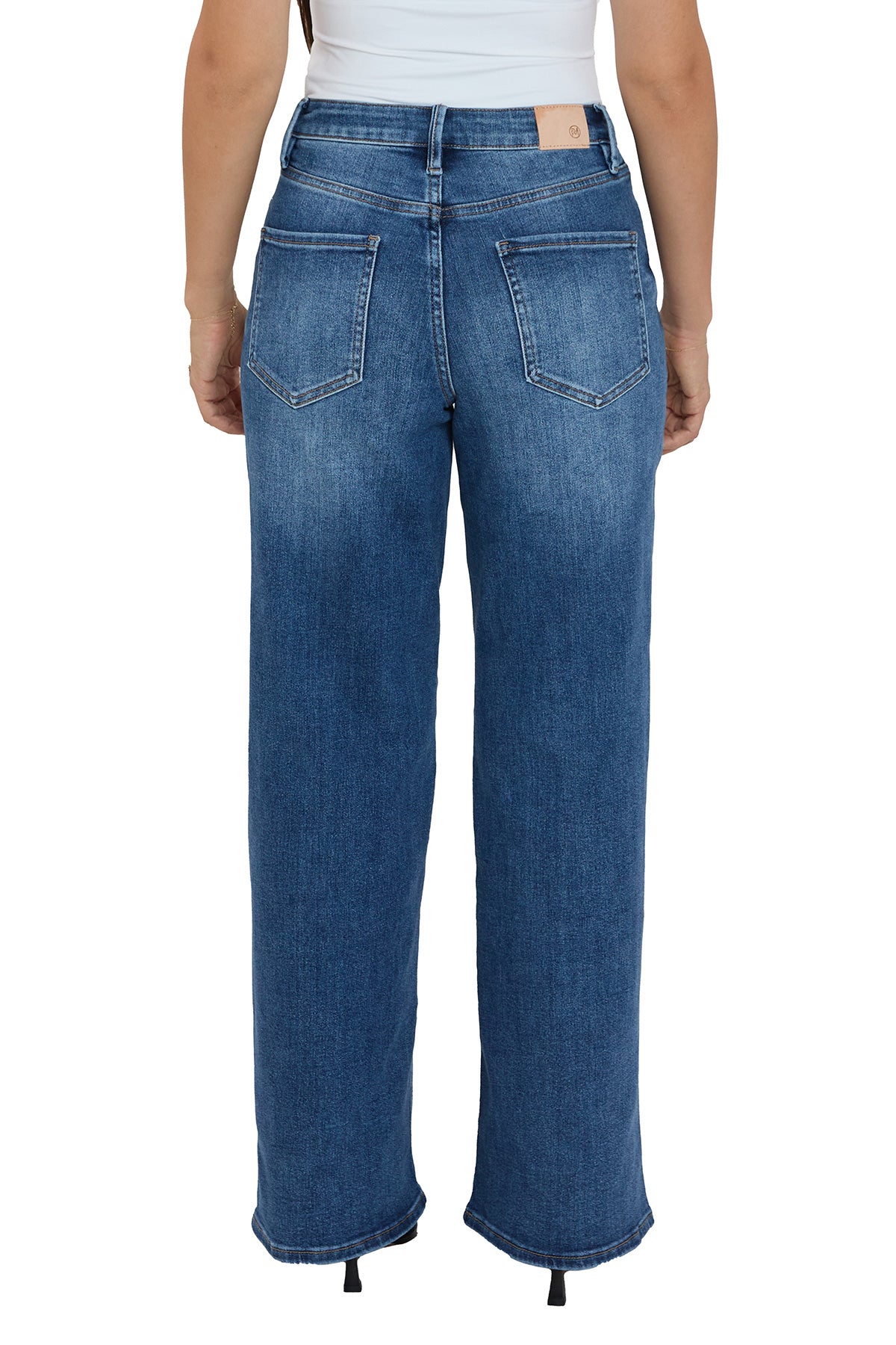 Chloe High Rise Wide Leg Jeans, designed for the woman who loves to combine comfort with standout style. These jeans feature a high-rise fit that accentuates your waist, offering a flattering silhouette that flows into a chic wide leg. Perfect for those who appreciate a modern twist on a classic design, the Chloe jeans provide a relaxed yet refined look that transitions seamlessly from day to night.