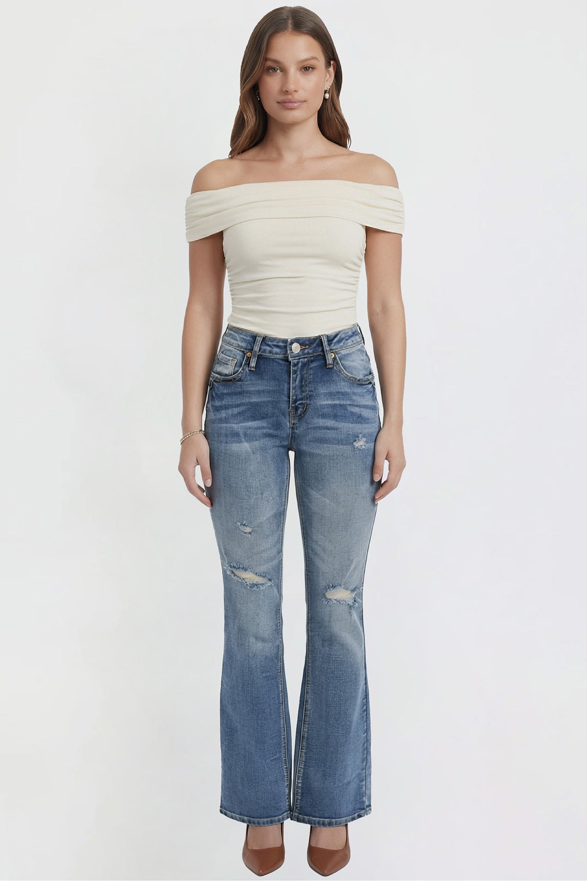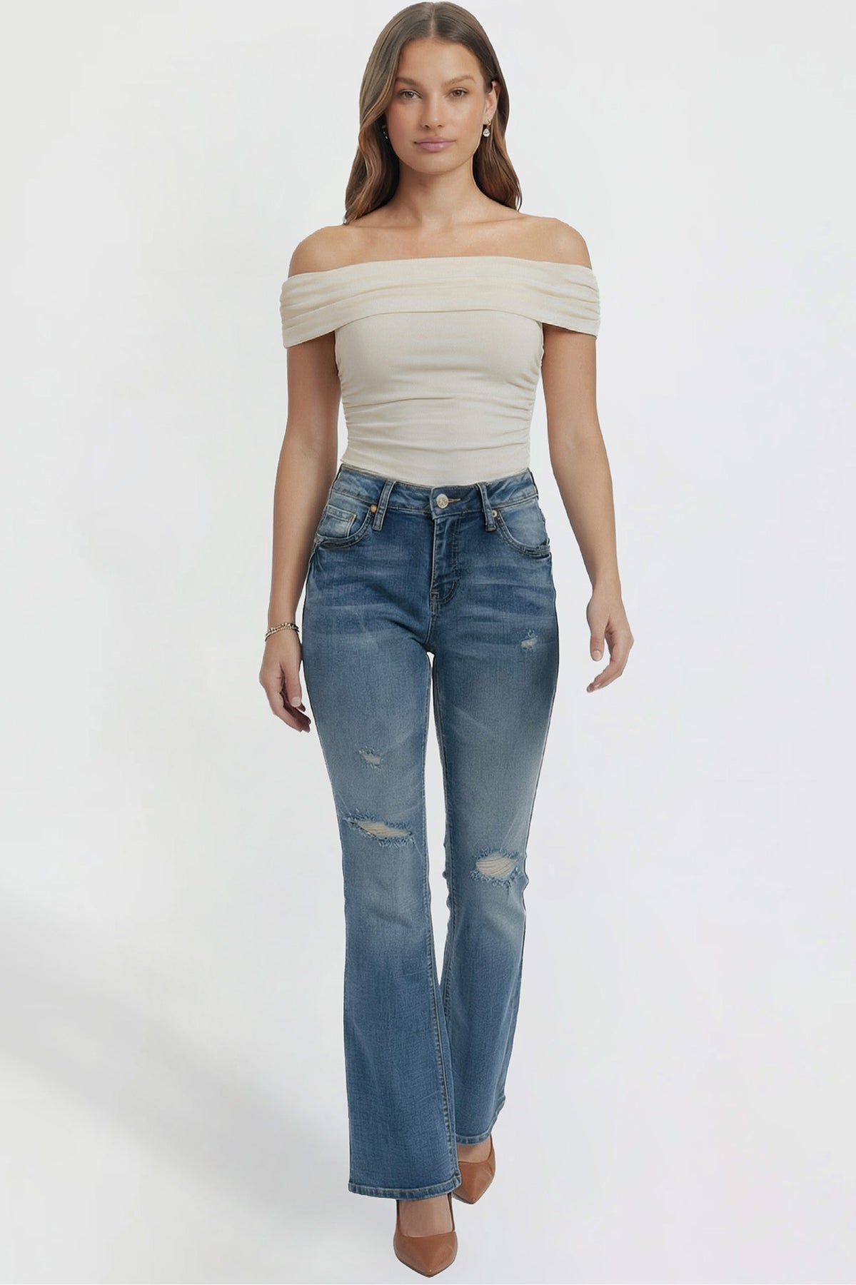Junior Mid Rise Bootcut Jeans with Cross Hatch Detail, Pack of 12