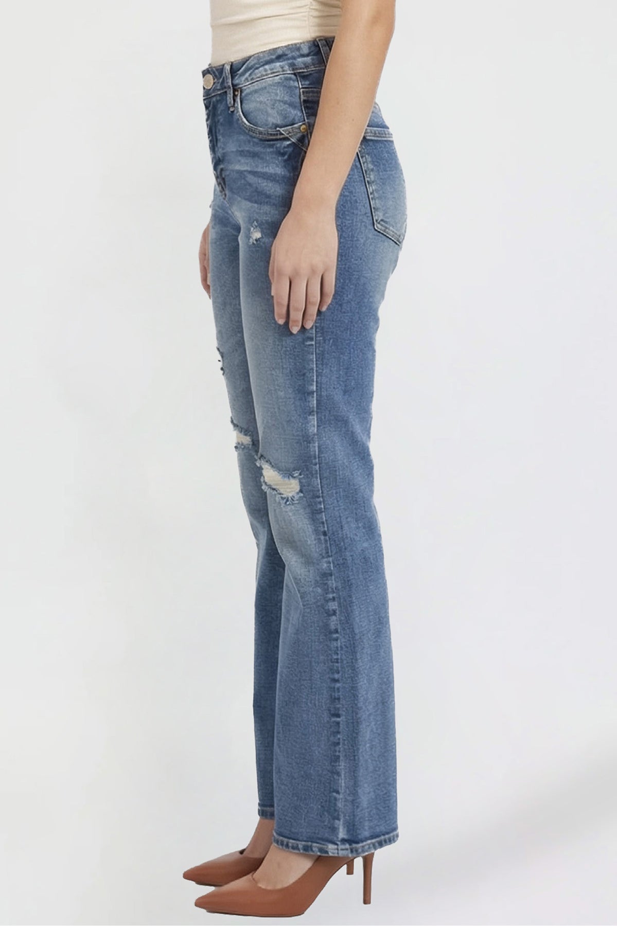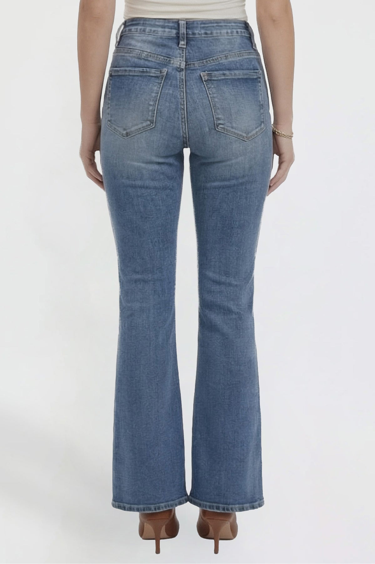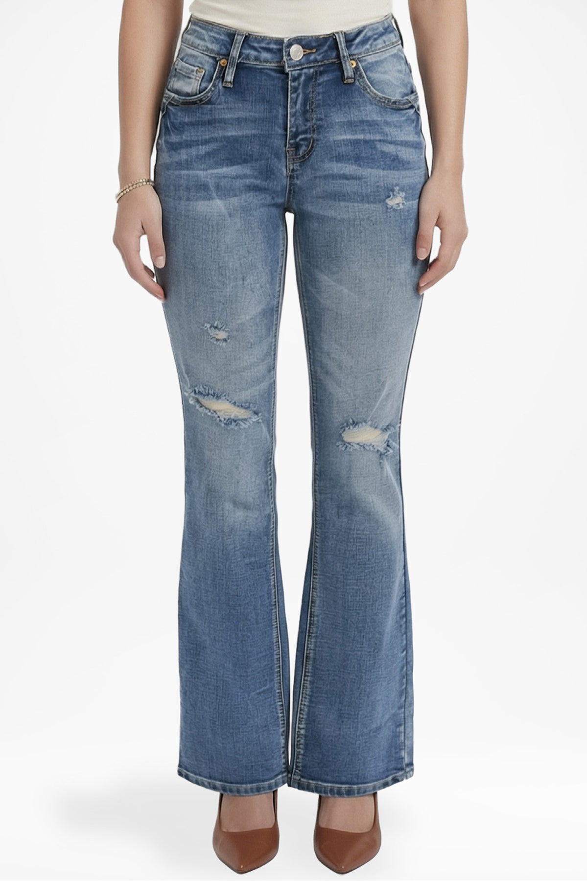 Step into everyday style with the Women’s Mid Rise Bootcut Jeans with Cross Hatch Detail. These jeans feature a classic bootcut leg, a comfortable mid-rise fit, and a timeless five-pocket design. The cross-hatch stitching on the back pockets adds a subtle touch of detail that sets them apart. Designed with belt loops and a button-and-zip fly closure, they're easy to style for casual or polished looks. Made from a premium denim blend, the fabric offers a structured feel with a hint of stretch for comfort that lasts all day.