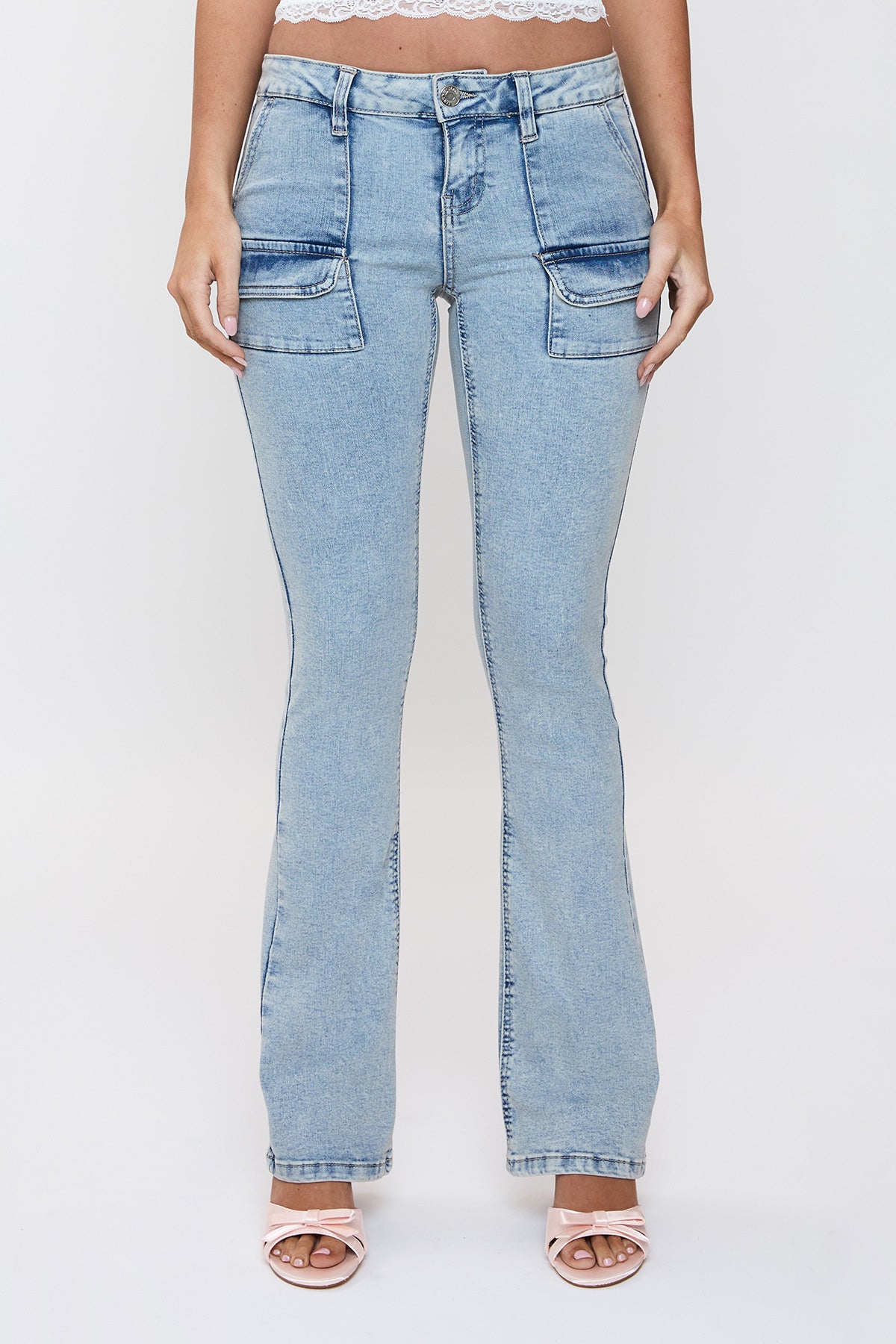These Women’s Porkchop Pocket Bootcut Jeans feature a flattering low-rise fit with a timeless bootcut leg for an effortlessly stylish silhouette. Designed with porkchop pockets with flap details and a classic zipper-and-button fly, they bring a touch of utility-inspired charm to your everyday denim. Made from a soft yet durable stretch blend, these jeans offer both comfort and flexibility for all-day wear.