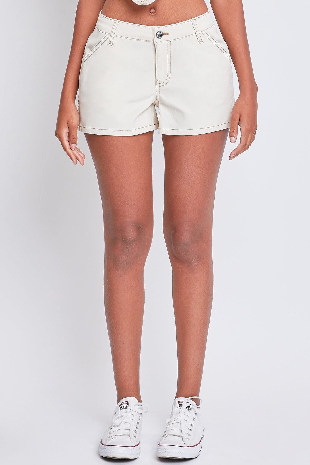 Add some trendiness to any Summer 'fit with our Junior Mid Rise Carpenter Short! These comfy mid-rise twill shorts feature contrast stitching and carpenter details such as large pockets and a hammer loop. These shorts are designed to have a slightly relaxed fit for a more casual and cool look. Also featuring a 1 button closure with zipper and belt loops. Available in a wide variety of colors to choose from. Style these with a cute crop top and sneakers for an easy-going outfit!