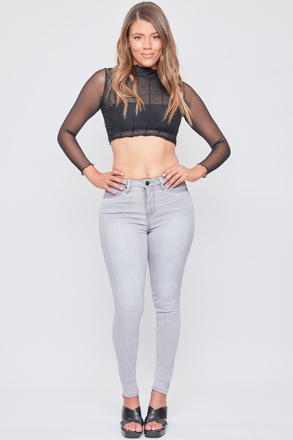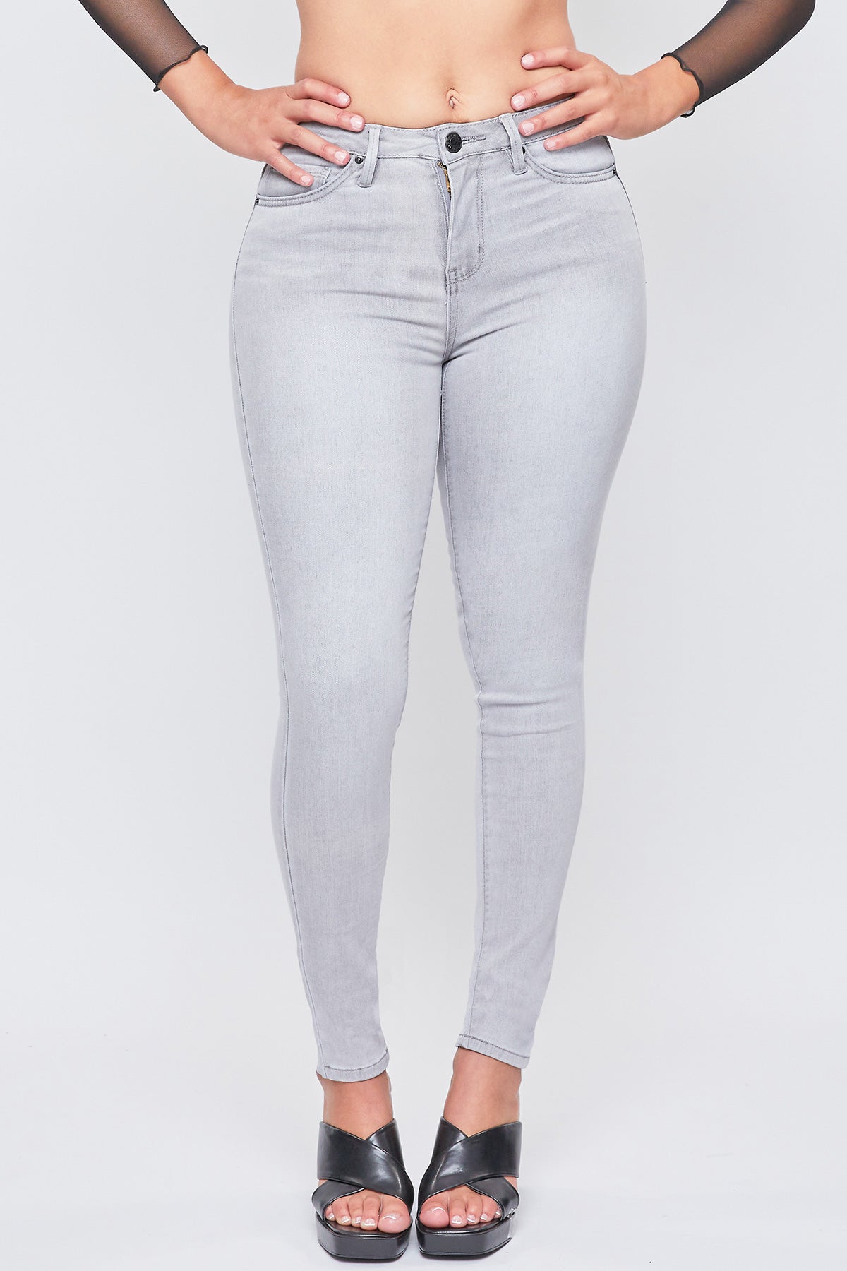 For the days you want to switch it up, our Junior 10" Mid-Rise 1-Button Skinny Jean will be your go to! Featuring a beautiful light gray wash with subtle fading throughout for the perfect vintage effect. Designed in a mid-rise and fitted throughout for the most flattering fit.