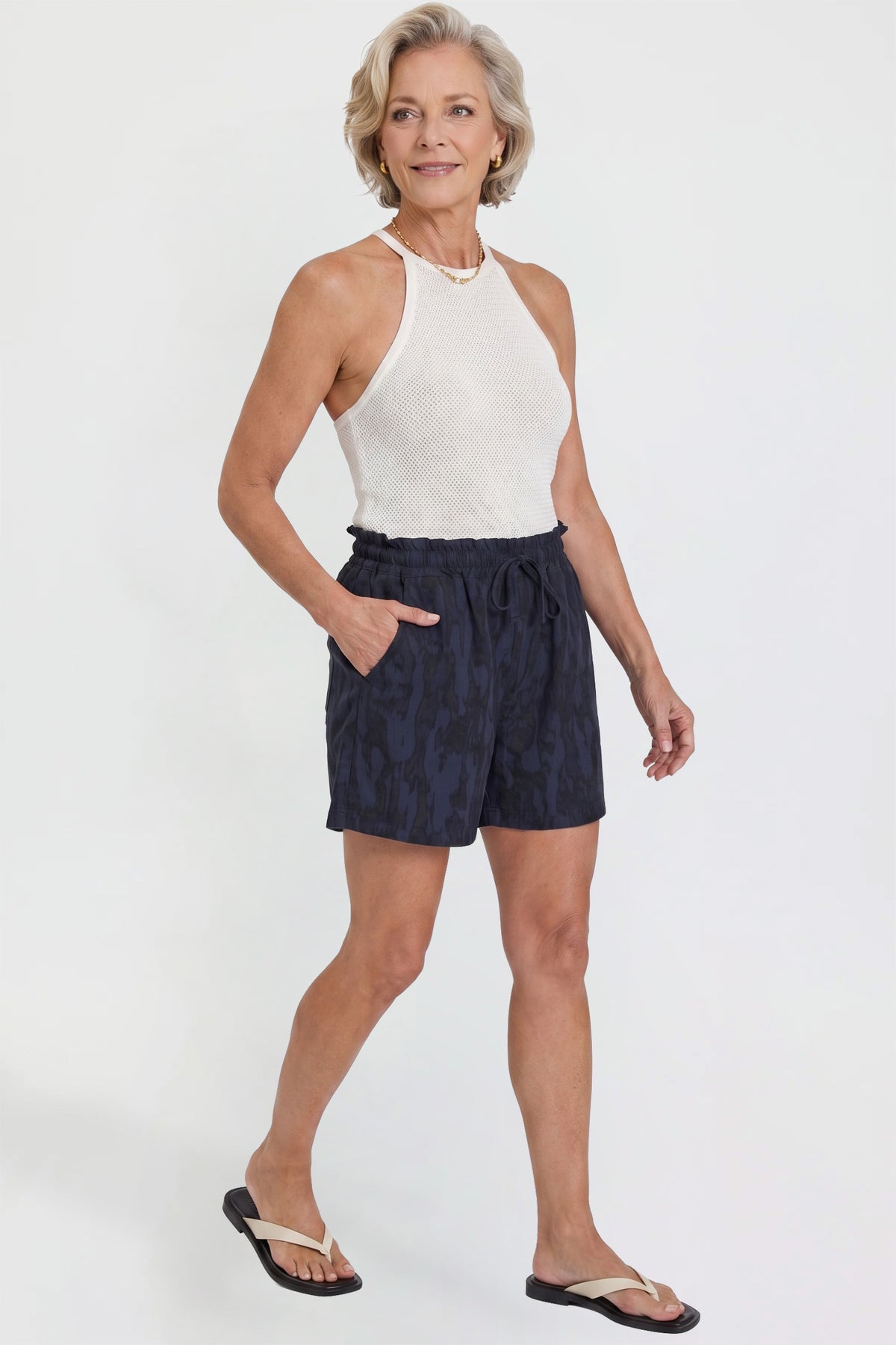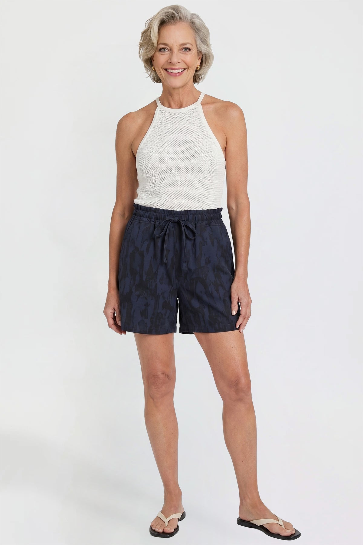 Our Missy Shorts with Scoop Pockets are going to be your new favorite go to! Featuring front tie, elastic waistband, and four functional pockets. This garment moves with you throughout the day for a comfortable, flexible fit.
