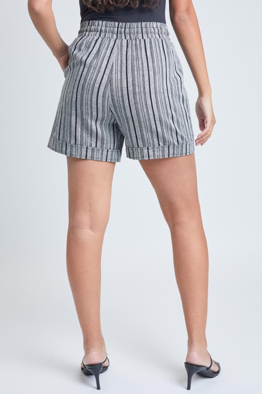 Our Junior's Drawstring Waistband Banded Hem Linen Shorts With Porkchop Pockets feature two side pockets, front tie, and elastic waistband. A must for lounge season!