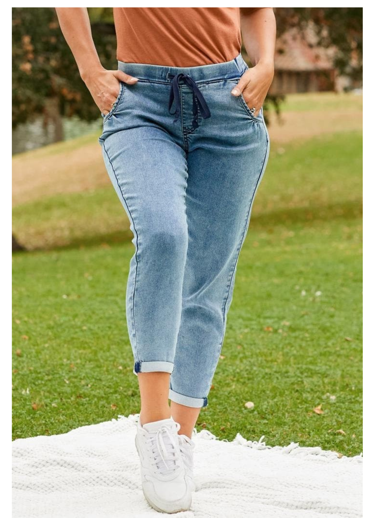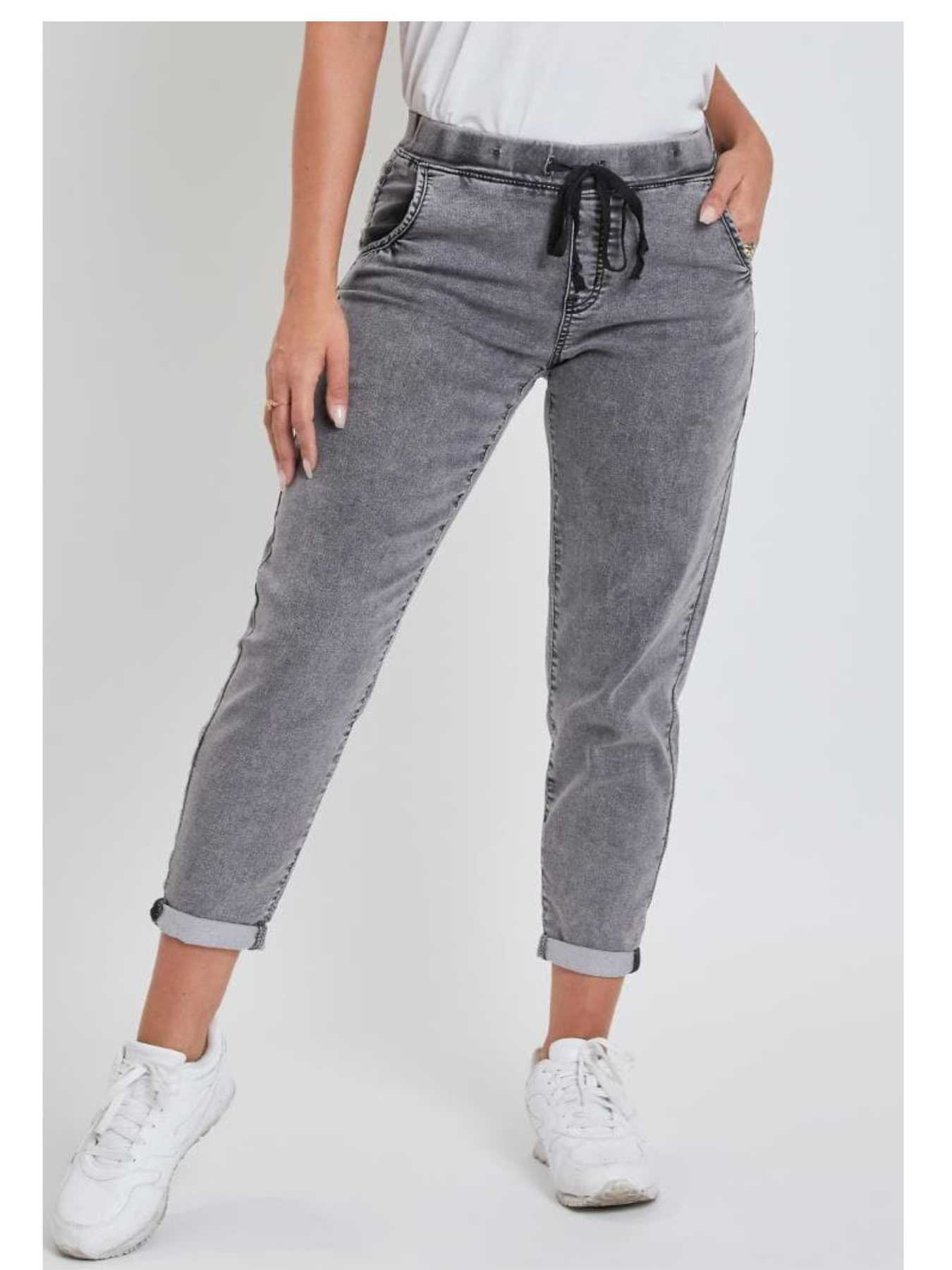 Our Women's Petite Kozy Fit Mid-Rise Jogger is a necessity for when you want to look good and stay comfortable. Featuring soft knit fabric, four functional pockets, draw string tie, cuffed hem, and elastic waistband .